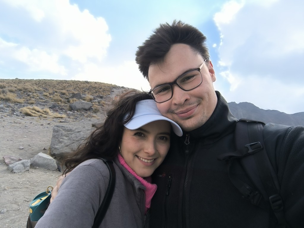 On Thursday we had quite some plans. We agreed with our friends to meet and take a trip to the volcano. It was awesome!. It is in fact the biggest tourist attraction of Toluca and Yannick had not been there in all of his visits so far. But at the end of his third one, he finally managed. We met with our friends at a convenient point for them to pick us up, and we drove around one hour to the volcano. Once we were there, we had to take a little road to the parking lot close to the top. We could also walk this distance, but because the volcano is so huge is better to drive that part, since you still have hours to walk from the parking lot to the top anyway.